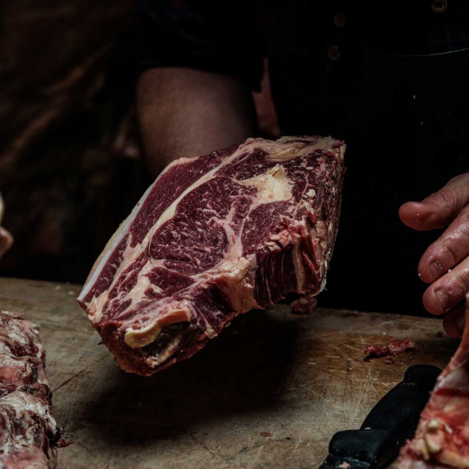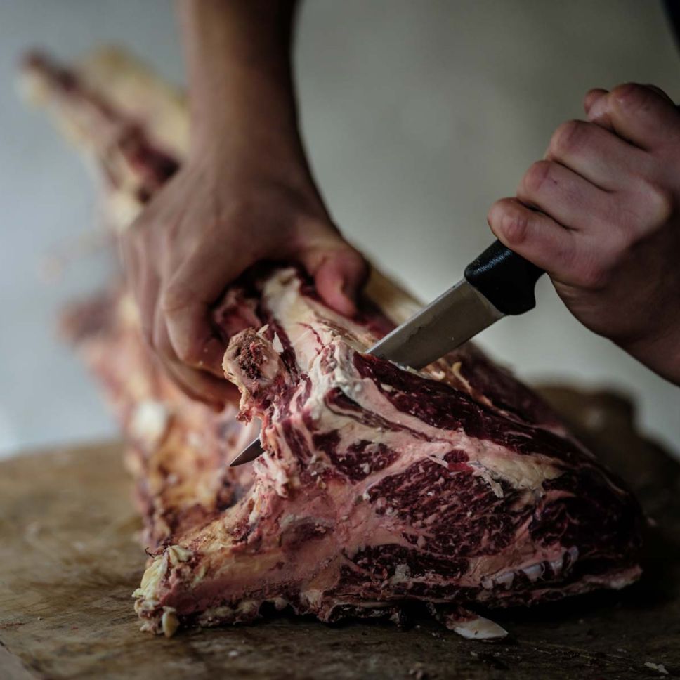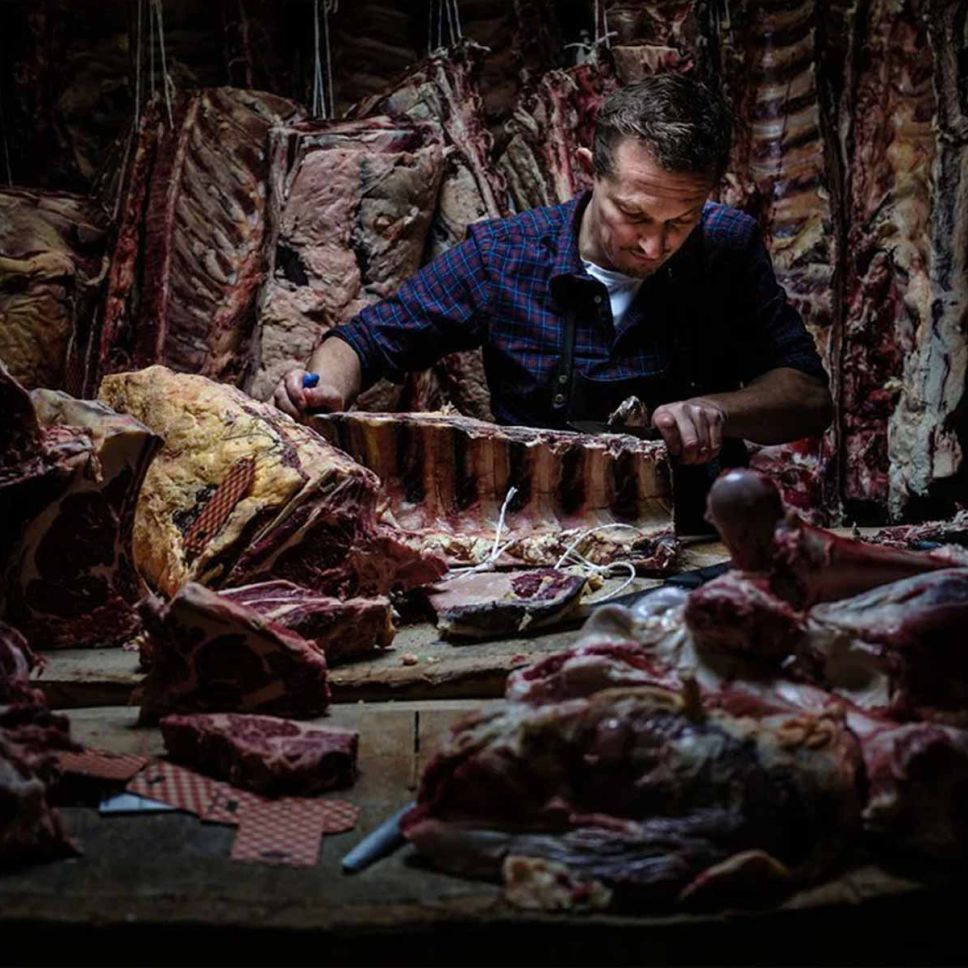 “Oedslach hails from an age when we didn’t focus on animal breeds, but instead lovingly laid aside particular cuts of meat to hang up and age. These cuts were selected for their colour, marbling, aroma, consistency and structure, then aged according to time-worn traditions and our own unique, contemporary ageing process!